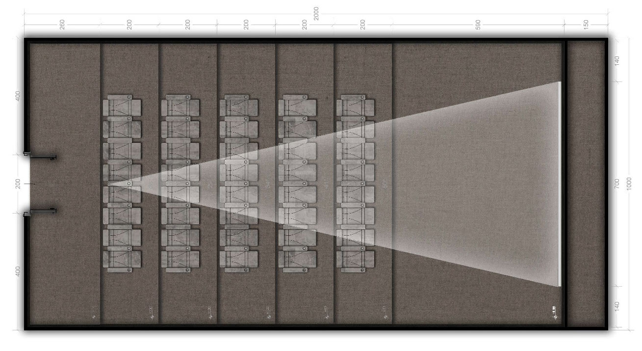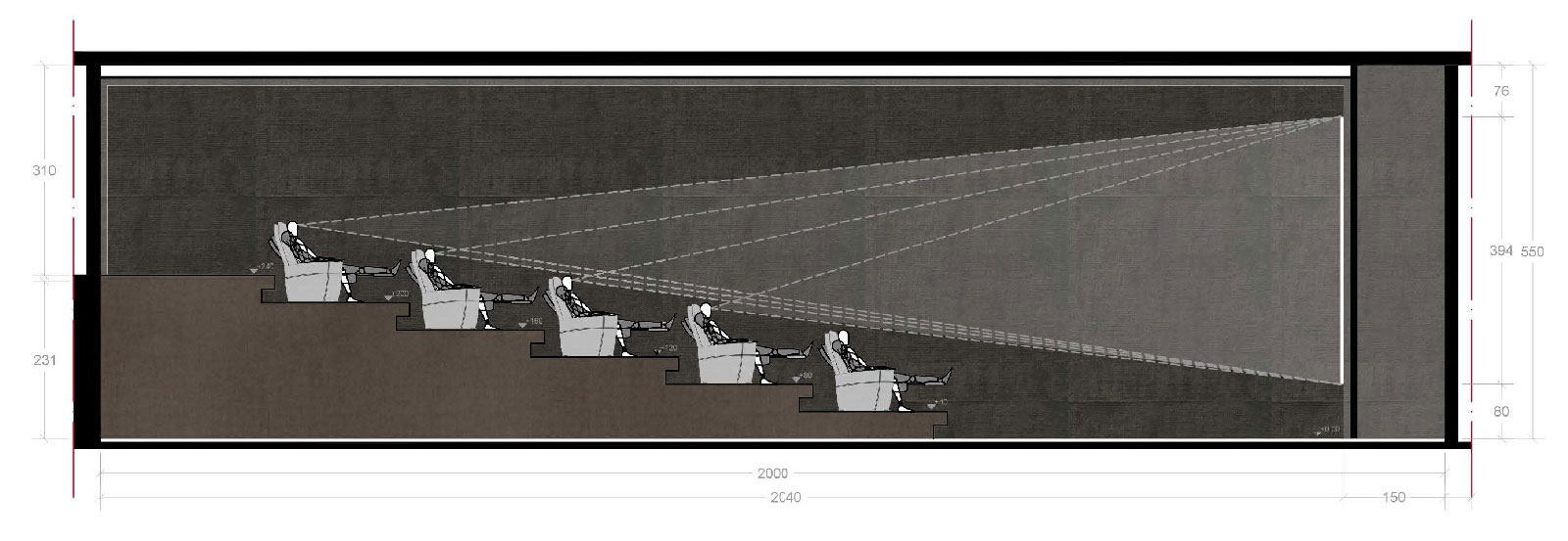 L’esperienza cinematografica permette di raggiungere il più alto livello di qualità dell’immagine, grazie al realismo dei colori derivato dalla perfetta combinazione tra schermo, proiettore e ambiente circostante. L’analisi dell’architettura della stanza permette di definire alcuni dei parametri fondamentali quali: angolo di visione, dimensione dello schermo, luminosità, formati video. Da questa analisi preliminare scaturisce la stesura dello schema di progetto utile a verificare eventuali interferenze e problematiche all’interno dello spazio.